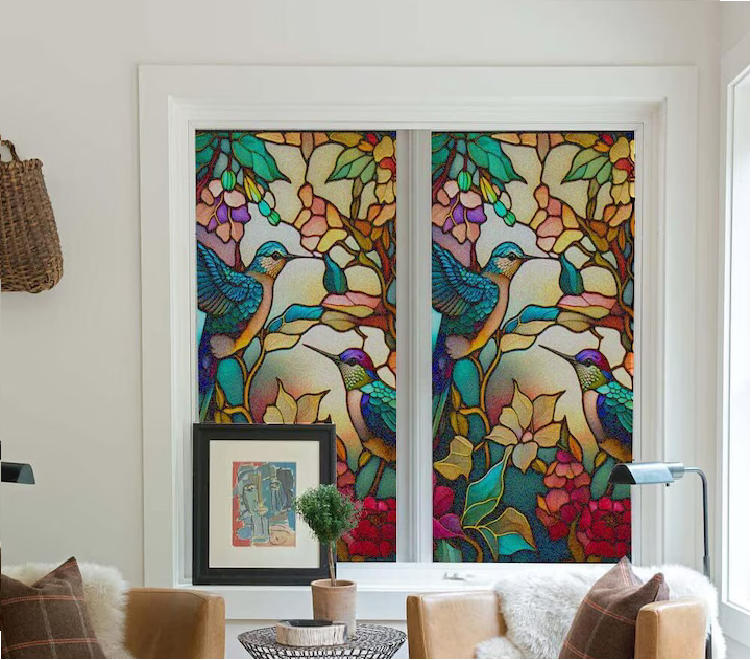 Inspirata din frumusetea colibrilor, aceasta folie cu aspect de vitraliu adauga un efect vizual spectaculos oricarei incaperi, oferind in acelasi timp intimitate totala si protectie solara eficienta.