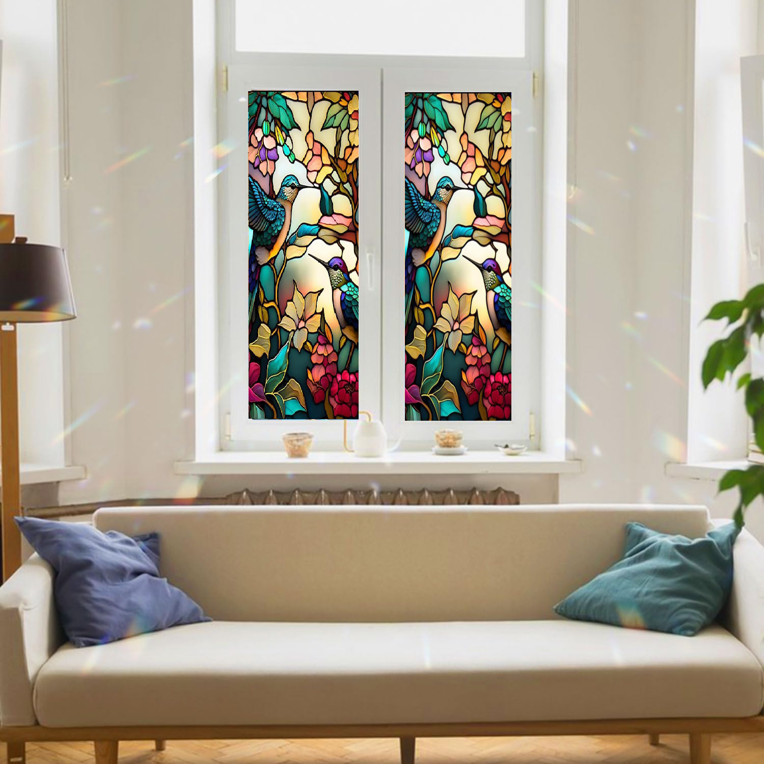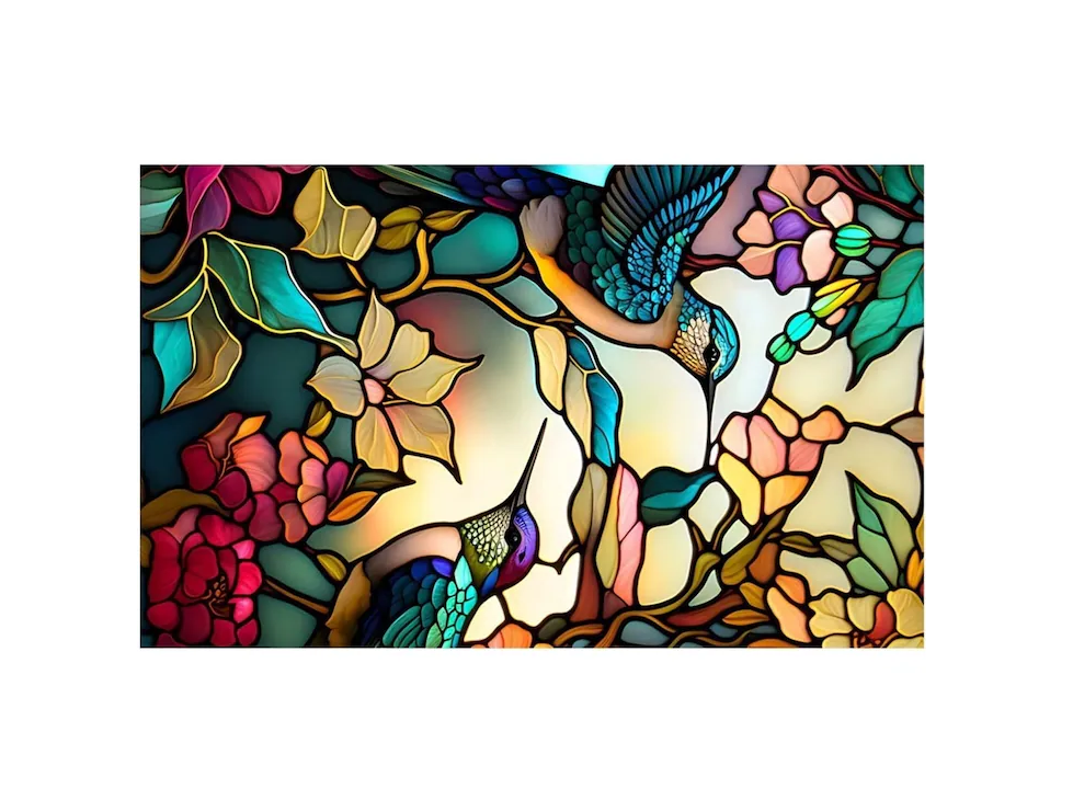 Model vitraliu Colibri – design decorativ elegant, cu jocuri de culori si lumini